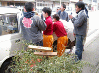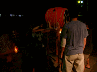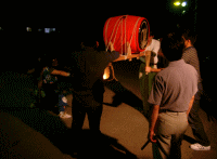 (03/05/30) 天神小屋入り!![]() 今日は天神祭りの小屋入り! 黒鬼、白鬼、黒獅子、赤獅子の前に置かれた 四つの湯呑にはたっぷりのお神酒・・・ これを固めの杯としてみんなで回し飲み (+_+) 約一ヶ月続くきつい?稽古のはじまりです! |