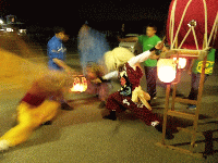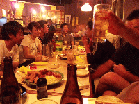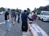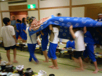 (2011/6/22) 天神祭り小屋じまい ![]() 約一ヵ月間に渡り行われた天神祭りの稽古も今日で終了! 黒鬼・白鬼と本番を一番ずつこなし最後の稽古を終えました。 その後は天神祭りの稽古無事終了と 本番当日の大成功を願い堅めの杯。 会長!お疲れ様でした。 ![]() さらに場所を移して反省会!? 裏打ちの握り込みがまだまだとか 鬼の首振り、獅子頭の高さが甘いとか 厳しい言葉が飛び交いました。 みなさん、ちゃんと覚えとるかや ^_^; とにもかくにもいい祭りにしましょう! |