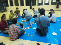 (2012/3/24) 山王祭 中入り![]() 山王祭りの稽古も早「中入り」をむかえました。 これまでは体力づくりや基本動作の繰り返しでしたが 今日から配役は衣装を着けての外稽古になります。 本番を想定した通し稽古を繰り返し 鬼・獅子・裏打ちの息を合わせていきます。 ![]() 中入り恒例、「狸楽巣」での反省会。 これまでの慰労と今後の目標などを熱く々語ります。 「鬼はこうだ・・・獅子はこうだ・・・裏打ちは・・・」 ってみなさんちゃんと覚えてますかね? 残りの稽古も力を合わせて頑張りましょう! |