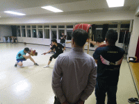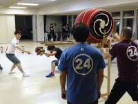 | (2018/6/7) 天神祭り基礎練習 天神祭の基礎練習。 鬼・獅子・裏打ち、それぞれ基本練習を繰り返します。 一つ一つの動きに師匠の厳しいチェックが入ります・・・ |