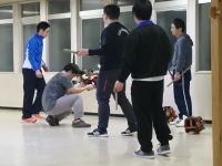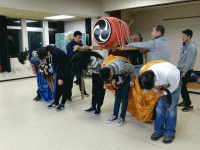 | (2019/3/30) 山王祭稽古 中入り 山王祭の稽古もちょうど折り返しの中入りを迎えました。 今日から本格的な外稽古が始まります。 これまで鬼と獅子は個々に基本の動きを練習してきましたが 通し稽古でお互いの間を計りながら理想とする舞いに近付けていきます。 新会員のH君も獅子として配役に起用され日々成長中! それに刺激を受けて先輩も負けじと奮起。 いい流れです。 |