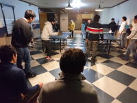 | (2019/2/9) 新年会 新体制の元、2019年度の活動が始まります。 すでに1/15には新潟で公演を行いましたが今日は新年会。 現会員とOBも一緒になってまずは温泉卓球大会! その後、近況や今後の活動などの話を肴に慰労会。 この一年も仲良く楽しくやれるかな? |