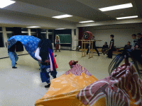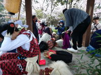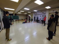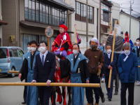 | (2022/3/26) 山王祭の稽古 中入り 山王祭の稽古も折り返しの「中入り」を迎えました。 これまで鬼、獅子、裏打ち、それぞれに基本練習をこなしてきましたが 今日からは衣装を着けて本番当日を想定した通しでの外稽古が主になり それを何度も繰り返す事で体力を付け配役同士の間合いを詰めていきます。 ちなみに、今年の中入りは雨天のため室内でのスタート・・・ 残りの稽古も怪我なく万全の状態で本番を迎える事が出来るよう頑張ります。