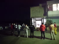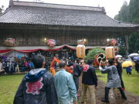 | (2022/4/12) 山王祭の稽古 小屋じまい 約一か月間の稽古もいよいよ最終日となる小屋じまい。 配役は衣装を身に着け本番宮入を通しで行い稽古収めとなります。 例年であればこの後慰労とお祭りの成功祈念を兼ねた祝宴を行いますが 今年は新型コロナウイルスの影響により残念ながら中止・・・ 屋外で会長による挨拶のみとなりました。 その場でお祭り当日は門付けは行わず山王神社での鬼太鼓奉納のみとなる事や 大幅に変更となった当日までの流れの報告があり会員一同それを確認。 門付けを楽しみにしておられた地区の皆様には申し訳ありませんが 今は現状で出来る限りの事を精一杯頑張ります。 なお、山王神社境内での鬼太鼓奉納は予定通り行いますが お越しになる方はマスクなどのコロナウイルス蔓延防止対策をよろしくお願い致します。